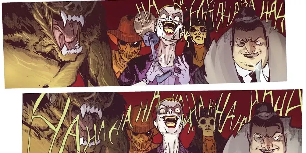 La reunión, sin embargo, sirvió a su propósito, ya que el Joker y el Ciervo juntos derriban a Batman y lo llevan a donde todos sus enemigos están esperando para tener un pedazo de él. El Espantapájaros, el Acertijo y, por supuesto, el Pingüino aparecen en esta trampa, lo que significa que todos estaban en el plan desde el principio.