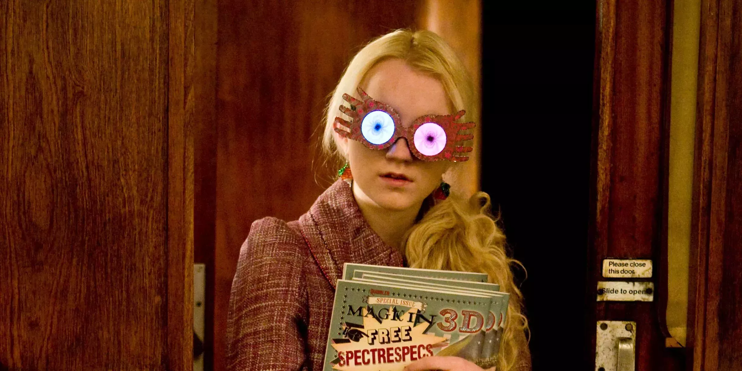 Aunque muchos personajes cuestionan sus creencias en las criaturas, las gafas de Luna le permiten ver a los Wrackspurts que llenan la cabeza de Harry. Cuando Draco Malfoy ata a Harry de cuerpo entero y lo cubre con su capa de invisibilidad, son las gafas de Luna las que le permiten encontrarlo y rescatarlo. Una vez más, lo que se burla de Luna es lo que finalmente salva el día.