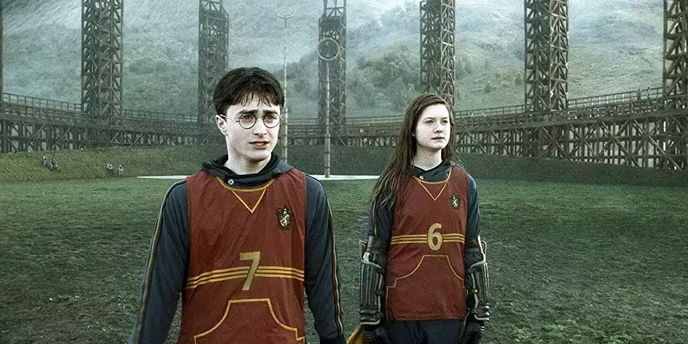 En El Príncipe Mestizo, Ginny ayuda a Harry a esconder el peligroso libro de pociones del personaje titular en la Sala de los Requisitos. Mientras él cierra los ojos y ella esconde la novela, Ginny finalmente da el salto y besa a Harry. Su confianza en esta escena permite que florezca una relación sana entre los dos durante el resto de la serie.