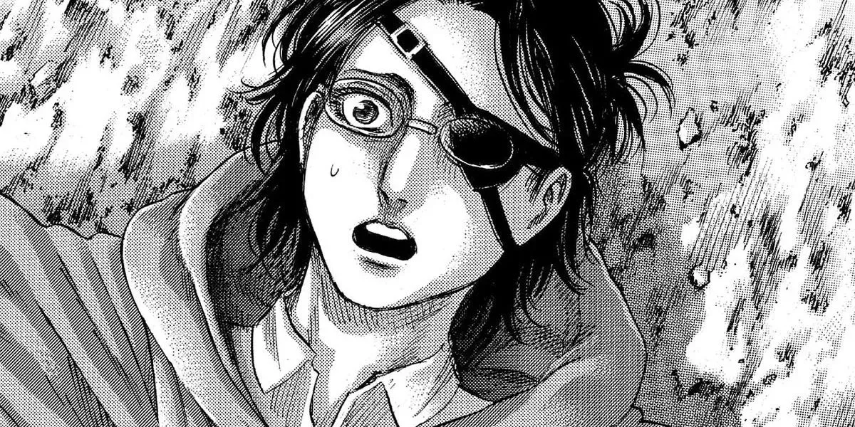Sus temores aumentan cuando sienten que el suelo se mueve y se dan cuenta de que el Rumbling está cerca. Sabiendo que alguien debe quedarse atrás para luchar contra los Titanes, Hange nombra a Armin nuevo Comandante y vuela, sacrificándose. Tras presenciar la muerte de otro comandante, el equipo está decidido a detener esta muerte innecesaria y poner fin al plan de Eren.