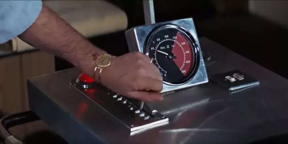 SPECTRE, los enemigos más conocidos de Bond, han intentado varias formas de asesinarle, pero en Thunderball ya están claramente desesperados y recurren a equipos de fisioterapia. Después de que la fisioterapeuta de Bond le coloque en un aparato diseñado para estirar la columna vertebral tras un flagrante acoso, le deja durante quince minutos.