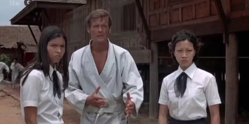 Los villanos de Bond tienen fama de no matarlo de forma práctica, pero casi siempre hay una razón, como querer información de él. Sin embargo, en El hombre de la pistola de oro, un esbirro deja a Bond inconsciente. En lugar de matarlo allí mismo, el esbirro lleva a Bond a un dojo de artes marciales para que lo maten con karate cuando se despierte. Incluso para los estándares de los villanos de Bond, es una supervivencia ridícula.
