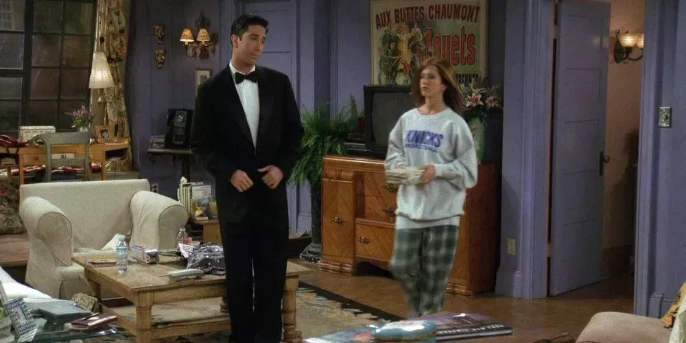La relación entre Ross y Rachel fue una de las partes más icónicas de Friends, y una de las que más gente sintonizaba cada semana, pero incluso cuando estaban juntos no siempre tenÃan la dinámica más saludable. En "The One Where Nobody's Ready", Ross, reducido a la desesperación por las travesuras del grupo, despotrica públicamente contra Rachel cuando ésta se esfuerza por elegir un traje.