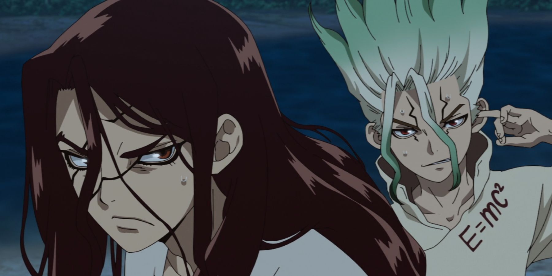 A pesar de ser extremadamente inteligente, Senku era un idealista que cree que todo el mundo merece una oportunidad de vivir, que es su filosofía cuando empieza a despetrificar a los humanos. Sin embargo, el ahora libre Tsukasa implora a Senku que cambie de opinión, y como es de esperar, Senku no está de acuerdo.