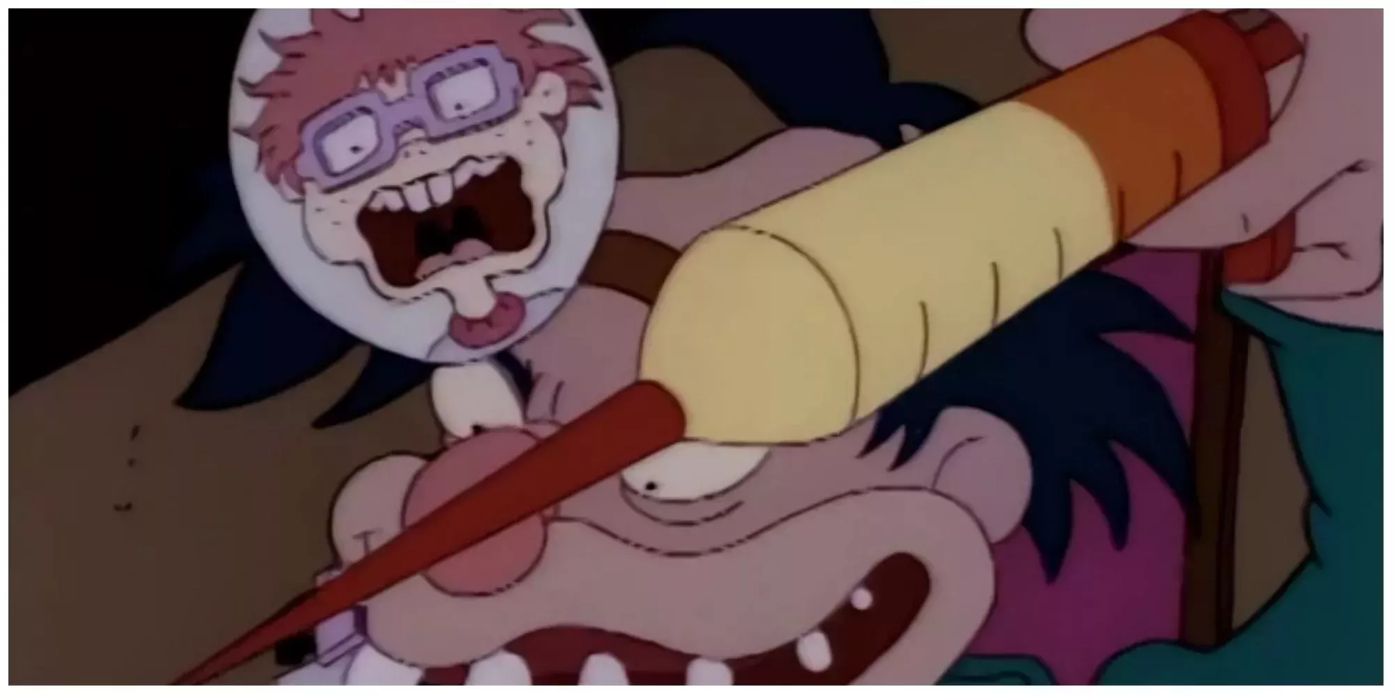 La escena comienza de la manera típica de los Rugrats. Sin embargo, el Dr. Lector, de aspecto amigable, se transforma rápidamente en un monstruo aterrador que recuerda al Sr. Hyde. Los espectadores sólo escuchan la historia desde el punto de vista de Chuckie y, como los otros bebés, tiene mucha imaginación. Sin embargo, su perspectiva no es mera fantasía. Las agujas pueden ser aterradoras para niños y adultos. Muchos niños han tenido un miedo similar al recibir su primera inyección, y la mayoría de los adultos recuerdan ese miedo demasiado bien.