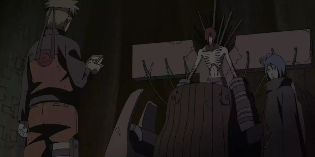 Nagato, también conocido como Pain, era el líder de los Akatsuki, cuyos traumas del pasado le habían llevado a tomar la determinación de destruir el mundo entero con la guerra para alcanzar la paz. Como parte de su plan, atacó la Aldea Oculta de la Hoja y mató a muchos de sus habitantes. Naruto no podía tolerar esto, así que se dirigió a donde estaba Nagato y tuvo una conversación con él.