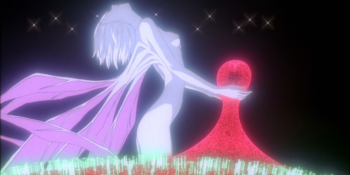 "Rei" es en realidad el alma de Lilith plantada dentro de un clon de Yui Ikari; hay muchos "Reis", todos guardados dentro de un tanque como cuerpos de reserva sin alma en caso de que la actual Rei muera. Ritsuko, celosa del afecto de Gendo por Rei, destruye los clones restantes; son simplemente "gs delgados con forma de personas". A medida que los clones de Rei se disuelven, sus risas, felizmente inconscientes, no cesan hasta que el tanque está lleno de nada más que partes de cuerpos.