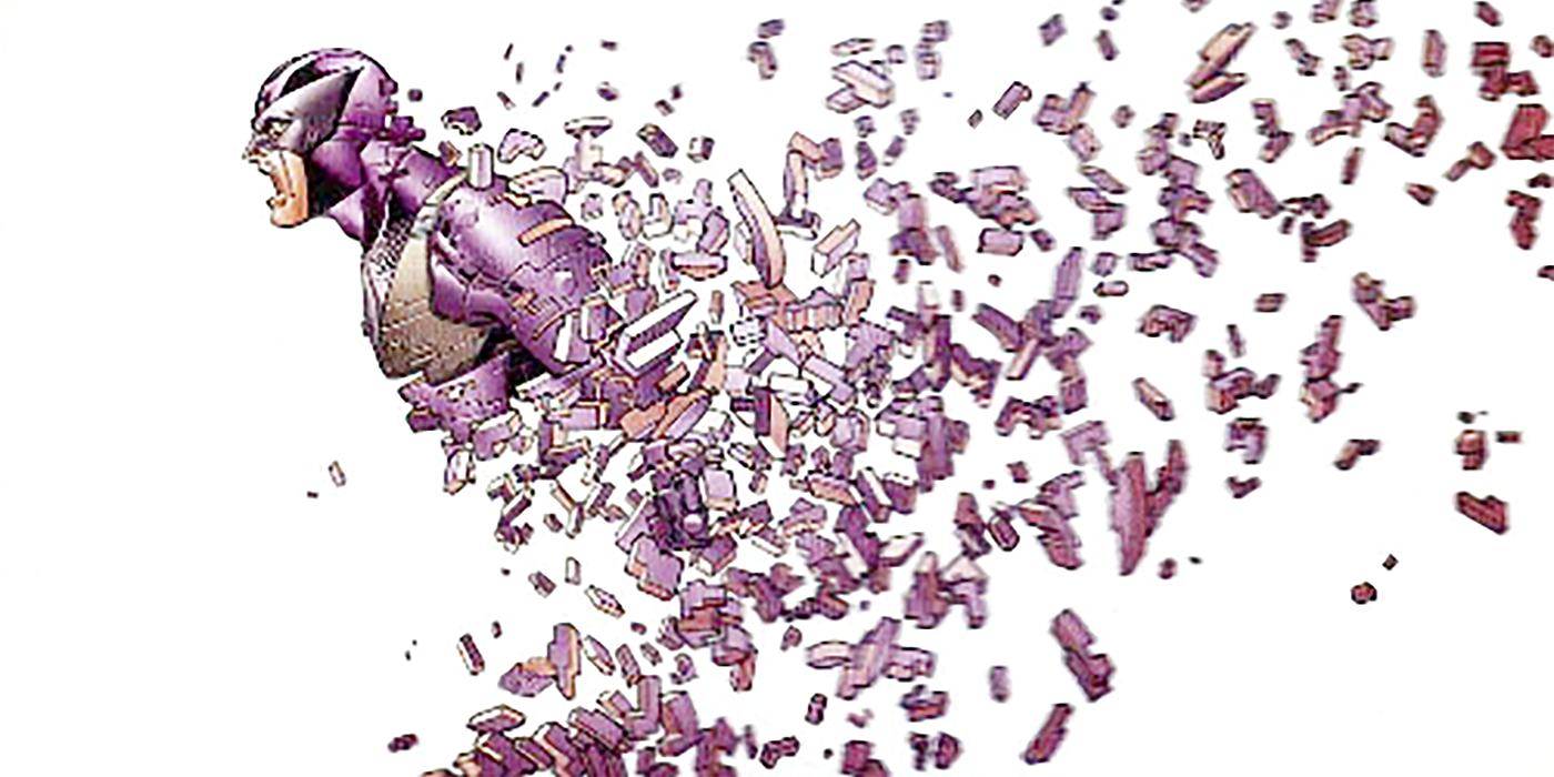 Durante el enfrentamiento, Wanda le hace desaparecer, pero no parece una forma pacífica de irse. Su cuerpo se rompe en bloques y se desprende antes de desaparecer.