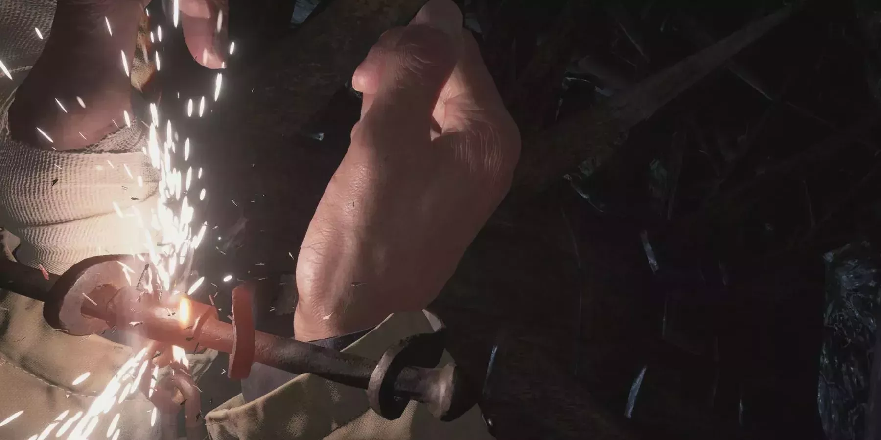 Resulta que los jugadores tienen que desplazarse a la esquina de la habitación y presionar en una pequeña alcoba. Cuando la rueda se acerque, si los jugadores se han colocado correctamente, Ethan levantará las manos y la rueda romperá las esposas de sus muñecas. Una vez rotas las esposas, la rueda deja de girar, pero incluso en el juego, los pinchos han golpeado claramente a Ethan en su escondite. Debería haber muerto incluso en la posición correcta. Escapar de esta trampa no tiene ningún sentido.