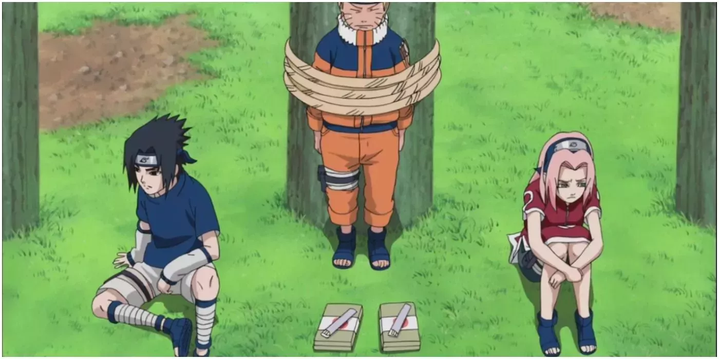 Después de fracasar en la prueba de Kakashi, Sakura y Sasuke pueden almorzar mientras que Naruto debe morir de hambre. De hecho, antes de que Kakakshi se vaya, ordena a Sakura y Sasuke que se coman los almuerzos sin compartirlos con Naruto. Sin embargo, Naruto empieza a tener hambre. Una vez que el estómago de Naruto gruñe, tanto Sasuke como Sakura terminan compartiendo sus almuerzos. Aunque Sakura duda en aceptarlo, escucha el razonamiento de Sasuke. Sasuke le recuerda que Naruto sería más útil en la próxima prueba si almorzara. Sakura está de acuerdo con la lógica de Sasuke y decide ayudar a Naruto, que se emociona por la amabilidad de sus compañeros.