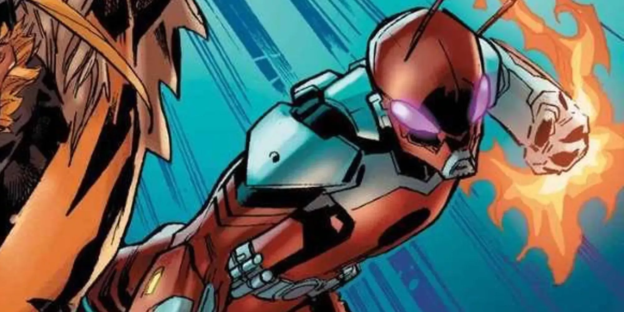 En el clímax de Ant-Man y la Avispa: Quantumania, Ant-Man debe enfrentarse a Kang cara a cara mientras se asegura de que no cruza el portal a Tierra-19999. Por desgracia, el villano pronto toma la delantera en la batalla. Cuando parece que Scott está a punto de morir a manos de Kang, Avispa regresa del portal y forma equipo con él para enviar a Kang al núcleo de energía.