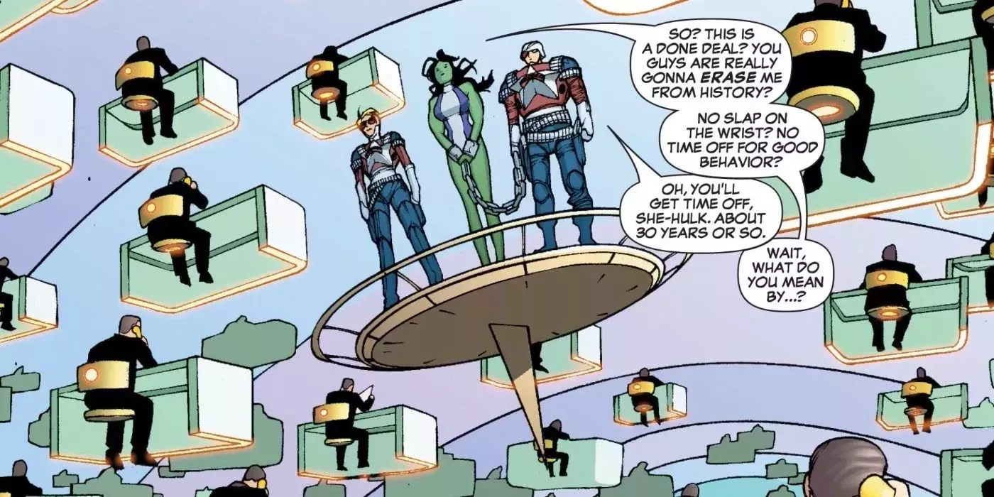 "The Good Ol' Days", de Soule y Pulido, enfrenta a Jennifer Walters con Matt Murdock en los tribunales. Después de que un retirado Steve Rogers sea acusado de muertes injustas, She-Hulk defiende al Capitán América mientras Daredevil ejerce de fiscal. Lo único que Steve le pide a Jennifer es que cumpla las reglas.