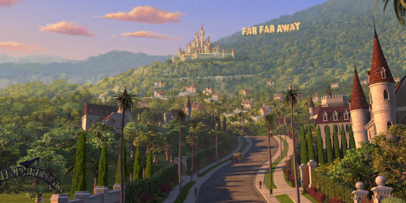 Mientras que Shrek introdujo el concepto de este mundo en el que todas las criaturas de los cuentos de hadas vivían juntas en una especie de sociedad organizada, Shrek 2 amplió aún más esta idea. No sólo se explora este concepto introduciendo las clases dirigentes y otras áreas fuera del lugar de origen de Shrek, sino que también se amplía la historia de fondo y la tradición del universo en el que vive Shrek.