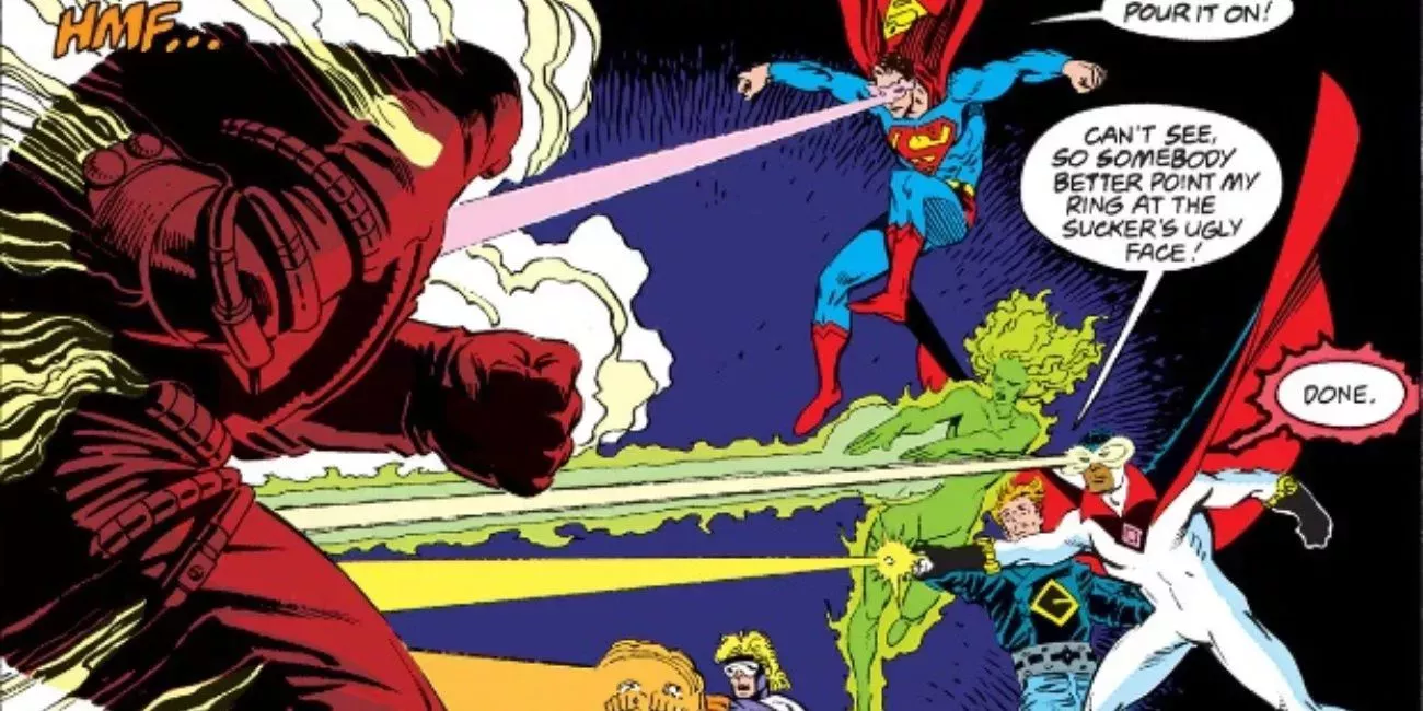 Aunque la llegada de Darkseid dejó fuera de combate a los héroes, Superman se recuperó rápidamente. Y a pesar de que La Liga se unió para luchar contra Darkseid, fue Superman quien cambió las tornas a su favor, lo que finalmente llevó a la formación del equipo.