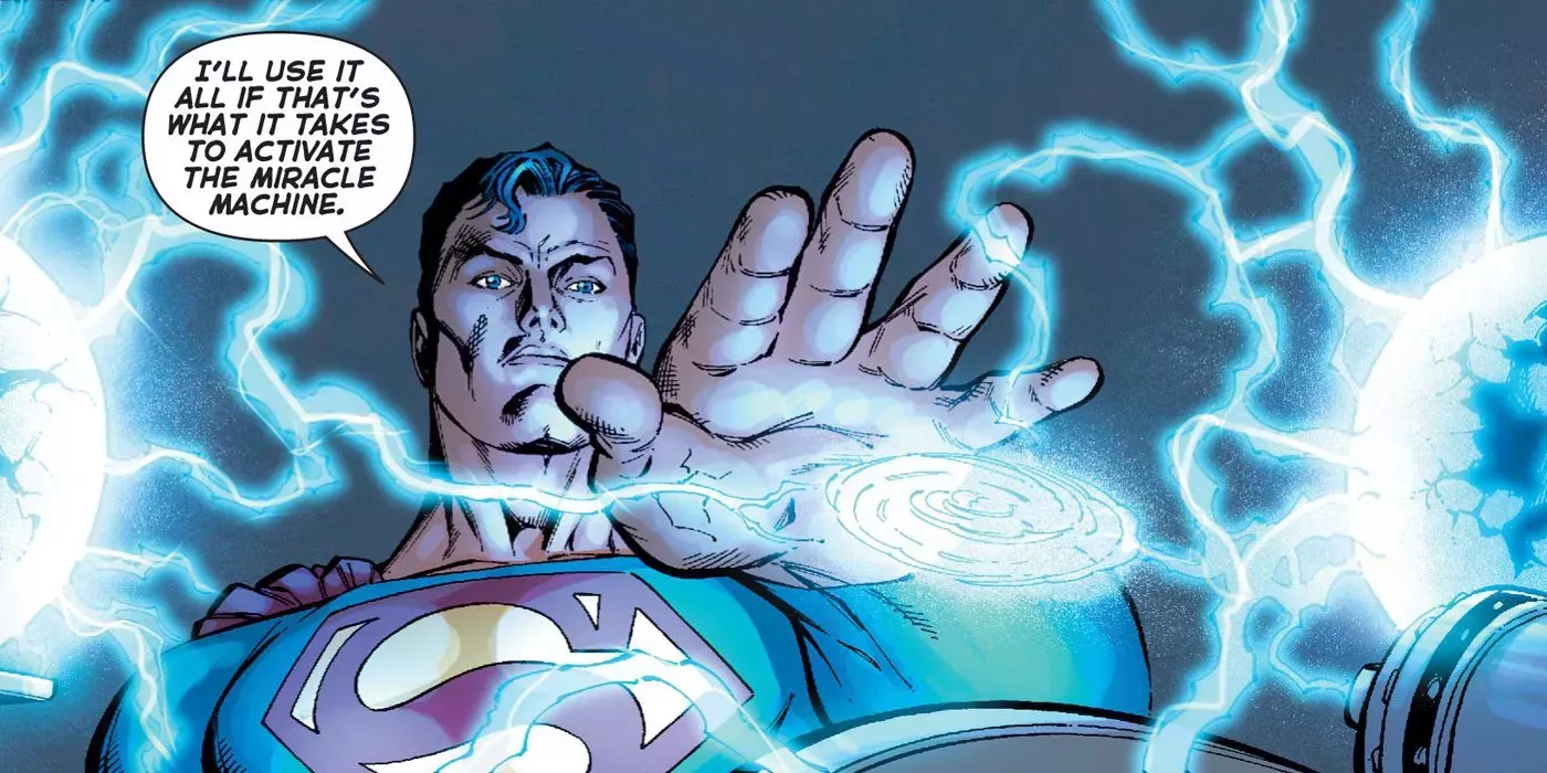 Superman contrarrestó la frecuencia vibratoria de Darkseid con una nota musical y lo derrotó. Luego tomó el poder de la Silla de Mobius, perteneciente a Metron de los Nuevos Dioses, para hacer funcionar la Máquina Milagrosa. Con el poder de su voluntad, Superman restauró la Tierra.