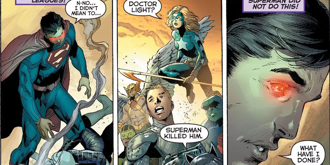 Superman sucumbe al mal, y cuando el Doctor Luz golpea accidentalmente a Wonder Woman, Superman lo vaporiza con su visión calorífica en un ataque de furia maligna. La trama se vuelve cada vez más intrincada, y Superman es perseguido por sus acciones.