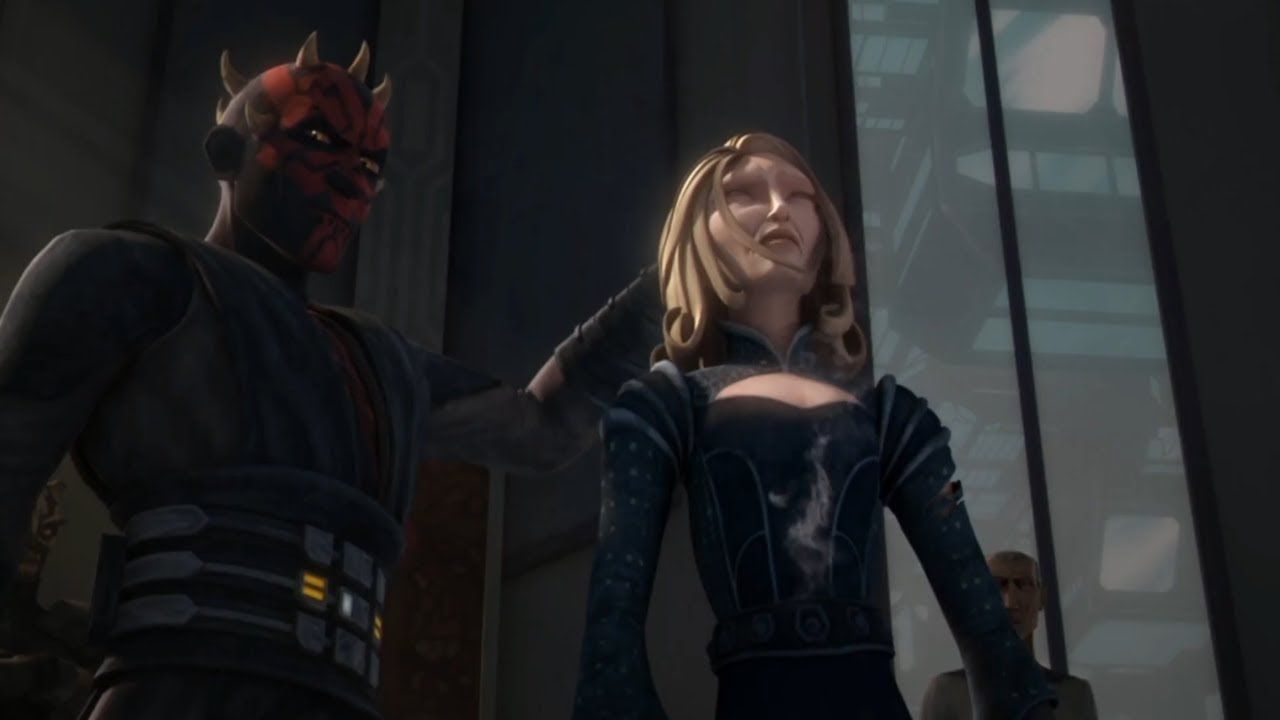 Satine fue secuestrada por Darth Maul para que pudiera atraer a Obi-Wan Kenobi a una trampa en "Sombras de la razón". Mientras Obi-Wan miraba a Maul, éste le atravesó el estómago con su sable láser mientras la asfixiaba con la Fuerza.