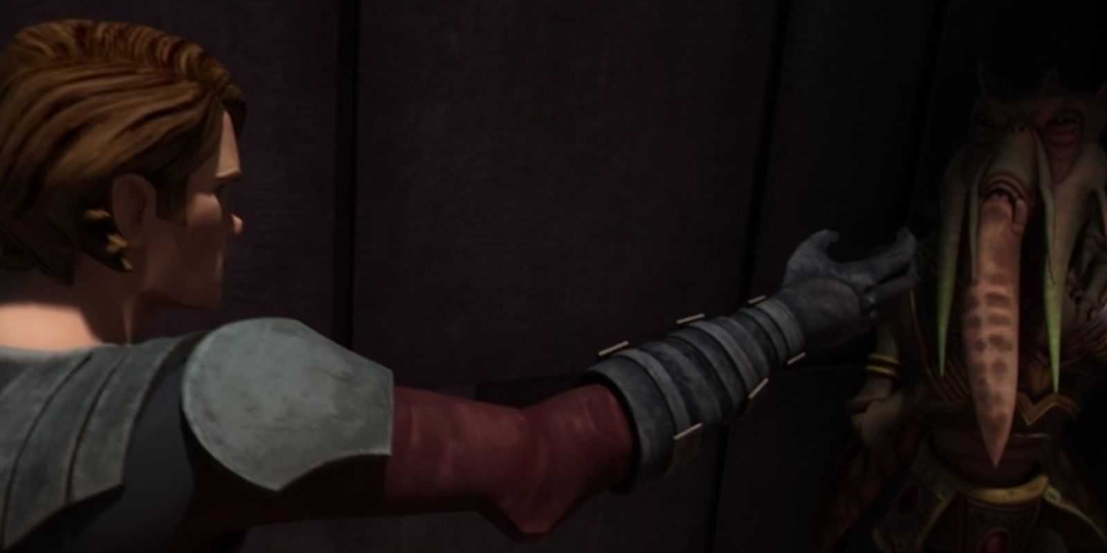 Para conseguir que hable, el trÃo utiliza colectivamente una técnica de truco mental Jedi hasta el punto de que Bane sufre una clara agonÃa y dolor mientras lucha contra el impulso, hasta que finalmente accede. Especialmente cuando la cámara enfoca el rostro horrorizado y conflictivo de Ahsoka Tano, la escena hace que el público se replantee lo incuestionablemente buenos que son realmente los Jedi.