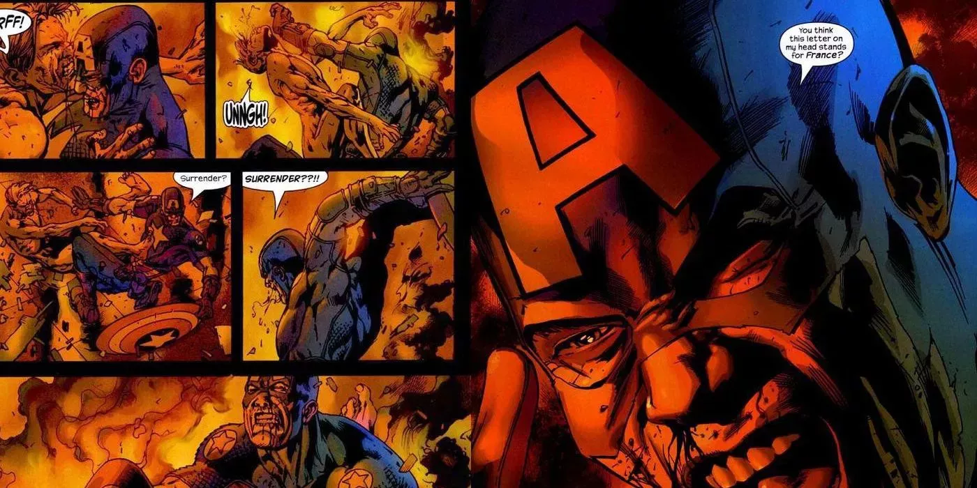 Los personajes del Universo Ultimate eran a menudo muy diferentes de sus homólogos del 616 y el Ultimate Cap era un gran ejemplo de ello. No era el héroe inspirador al que los lectores estaban acostumbrados, sino más bien el soldado definitivo, un Capitán América perfecto para un mundo posterior al 11 de septiembre. Se puede argumentar que el guionista Mark Millar lo hizo a propósito, pero eso no lo hace menos chocante.
