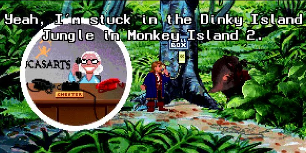 LucasArts se asocia más a menudo con sus contribuciones a Star Wars, pero estuvo a la vanguardia del género de aventuras point-and-click. Estos tÃtulos son algunos de los más meta de todos los tiempos, y la franquicia Monkey Island se burla constantemente de la naturaleza obtusa del género. Monkey Island 2: La venganza de LeChuck llega a hacer que el protagonista del juego, Guybrush Threepwood, llame a la lÃnea de ayuda de LucasArts para resolver su problema actual, o simplemente entablar un diálogo meta sobre la naturaleza de la compañÃa de videojuegos.