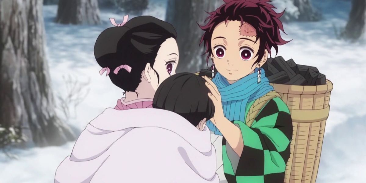 Cuando entró en la casa, encontró a toda su familia tendida en un charco de sangre. Su hermana Nezuko fue la única superviviente e inmediatamente la cargó a la espalda para llevarla a un médico.