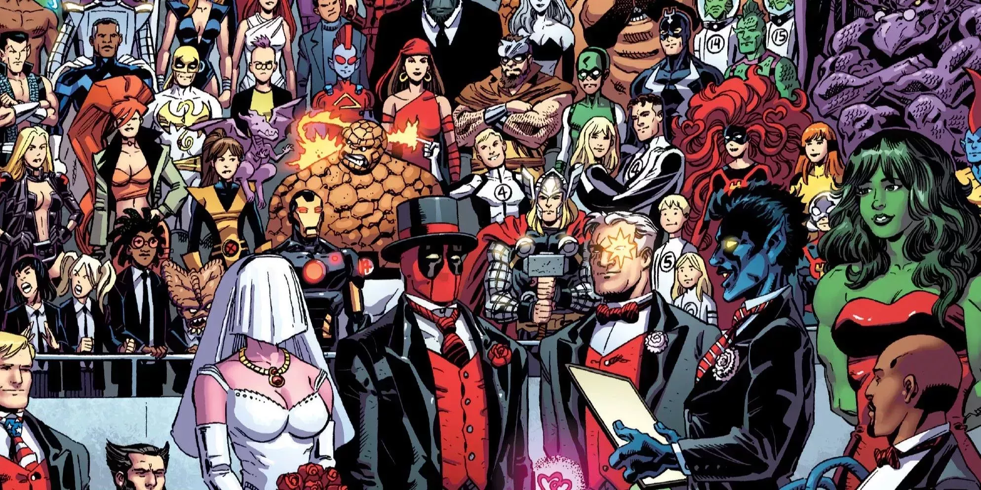 Algunos de estos invitados tienen más sentido que otros. Que todos los X-Men aparezcan en la boda de Kitty Pryde y Piotr Rasputin tiene sentido. La aparición de los cinco X-Men originales en la boda de Reed y Sue -cuando eran un grupo secreto oprimido por la humanidad- tiene menos sentido. La boda de Bruja Escarlata y Visión fue una boda doble con Mantis y Swordsman, una elección extraña que disminuyó el impacto de ambas bodas. El número de la boda de Deadpool batió el récord Guinness de "mayor número de personajes de cómic en la portada de un solo número", pero es posible que se trate de una autoparodia.