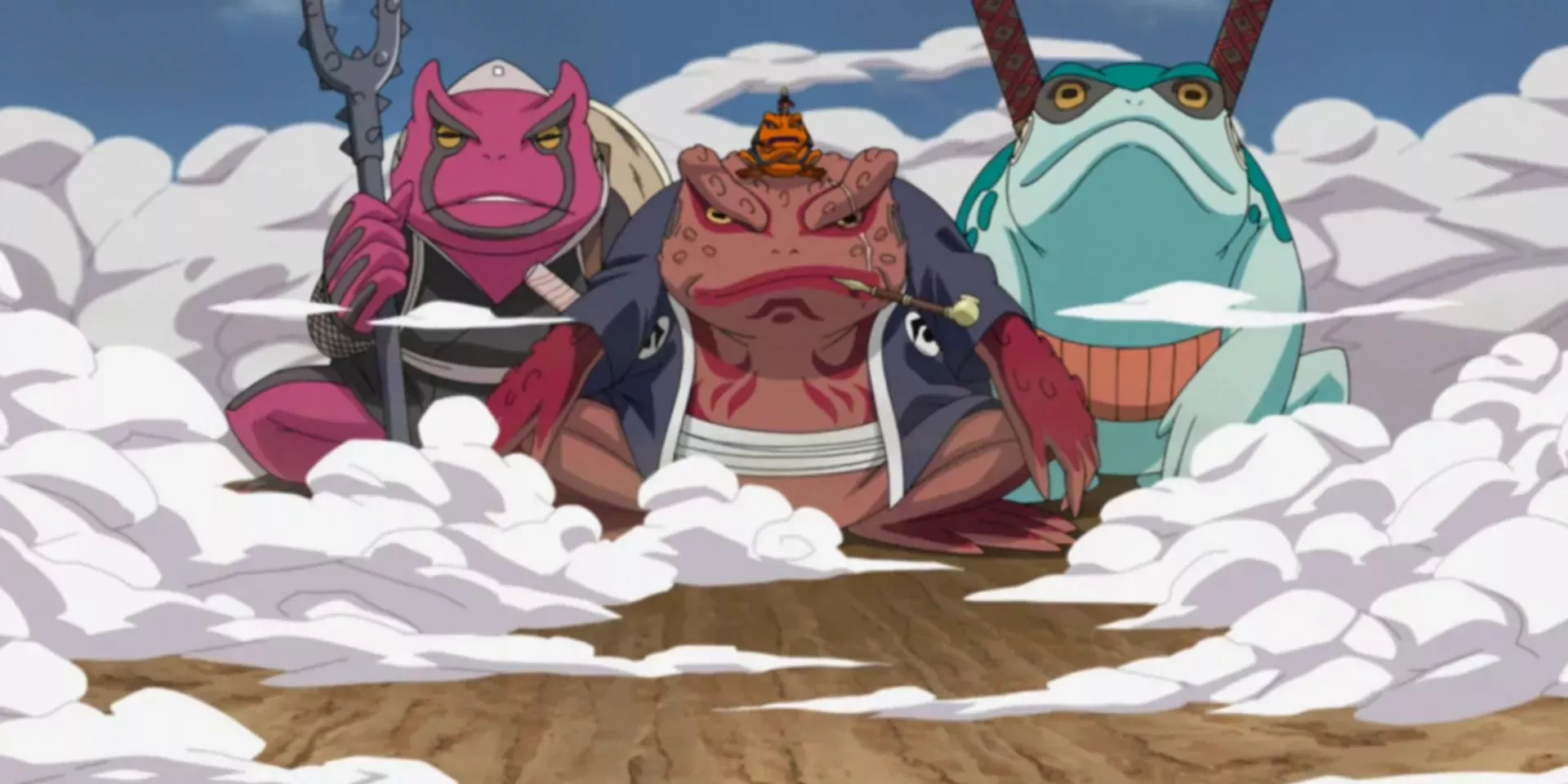 Tras la muerte de Jiraiya, Naruto fue el único usuario de los sapos de batalla del monte Myoboku. Cada sapo es tremendamente poderoso, habiendo demostrado su valía a través del conflicto contra Pain. Gamabunta fue incluso lo suficientemente fuerte como para enfrentarse a Shukaku mientras Naruto lo montaba y abatía a Gaara. Su lealtad es tan exclusiva como útil, especialmente teniendo en cuenta la personalidad pugnaz y excéntrica de los sapos. Sin embargo, Naruto los ha utilizado menos en los últimos años, ya que sus oponentes han crecido en fuerza más allá de las limitaciones de los sapos.