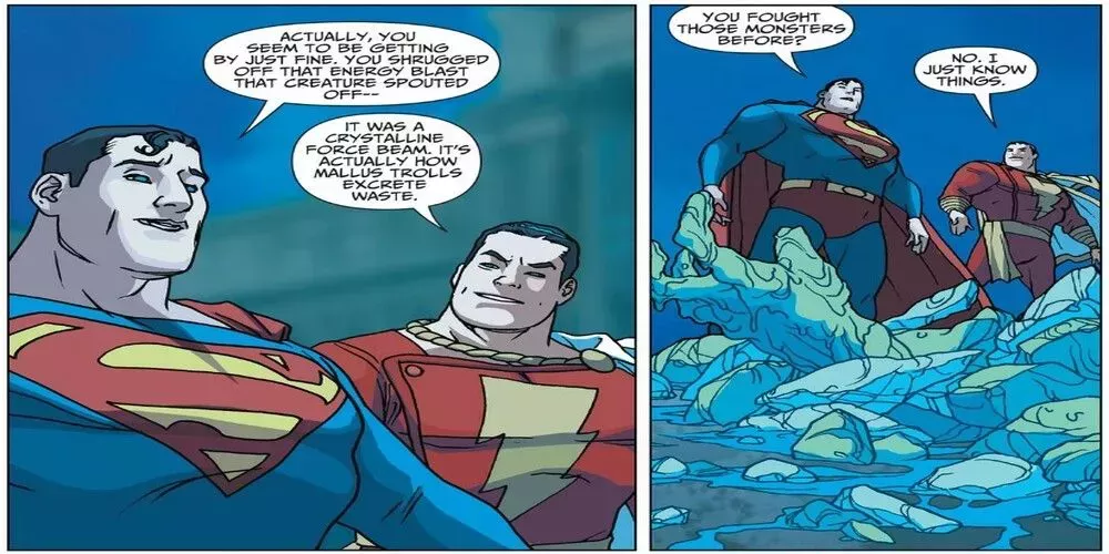 La fuerza bruta suele considerarse el último recurso de la mayorÃa de los superhéroes. La mayorÃa de los personajes heroicos clásicos de DC prefieren evitar una pelea siempre que sea posible, especialmente cuando una batalla podrÃa poner en peligro a los civiles. En el caso de Shazam, la capacidad de hablar para salir de un problema es esencialmente uno de sus poderes.