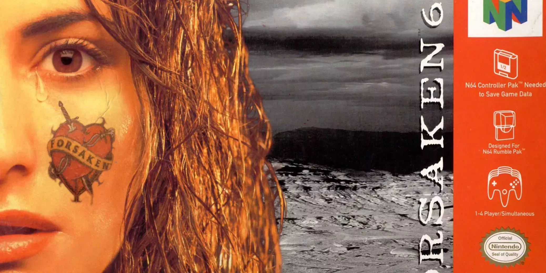 La falta de juegos para adultos en Nintendo 64 ayudó a que juegos como Forsaken 64 destacaran entre los demás. Este juego de disparos en primera persona para adultos fue un lanzamiento bastante oscuro de Nintendo 64, pero el confuso arte de la caja del juego probablemente no ayudó a impulsar sus ventas.