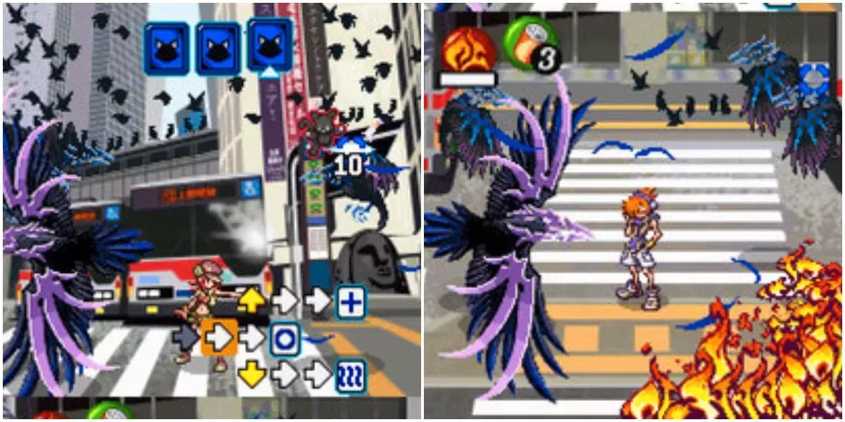 El sistema de combate de World Ends With You fue conceptualizado como algo que sólo podía jugarse en la Nintendo DS, así que Square Enix y Jupiter diseñaron un sistema de batalla sobrecargado que utiliza tanto la pantalla táctil como la superior de la DS. El resultado son unas pantallas de batalla excesivamente cargadas que exigen a los jugadores dividir su atención lo mejor posible, centrándose en las mecánicas táctiles de la pantalla táctil.