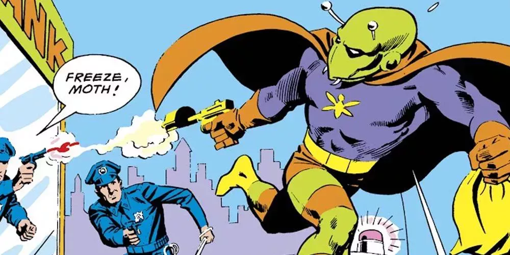 La Polilla Asesina, uno de los villanos más extravagantes e ineficaces de Gotham, quedó fuera de la serie original de Batman , probablemente debido a su condición de granuja perdedor. A diferencia de los villanos más populares de Batman, como el Joker o el Acertijo, que poseÃan mentes agudas o un carisma siniestro, la fama de la Polilla Asesina residÃa en su enfoque exagerado de la maldad, unido a sus constantes fracasos en todos los aspectos. Como autoproclamado "anti-Batman", intentaba ofrecer protección a los bajos fondos de Gotham a cambio de dinero, utilizando trucos llamativos, como un "Polimóvil" y una pistola capullo para atrapar a sus enemigos. Su llamativo traje, morado y verde con grandes alas, lo distinguÃa como uno de los villanos más extravagantes visualmente, pero también subrayaba su incapacidad para ser tomado en serio.