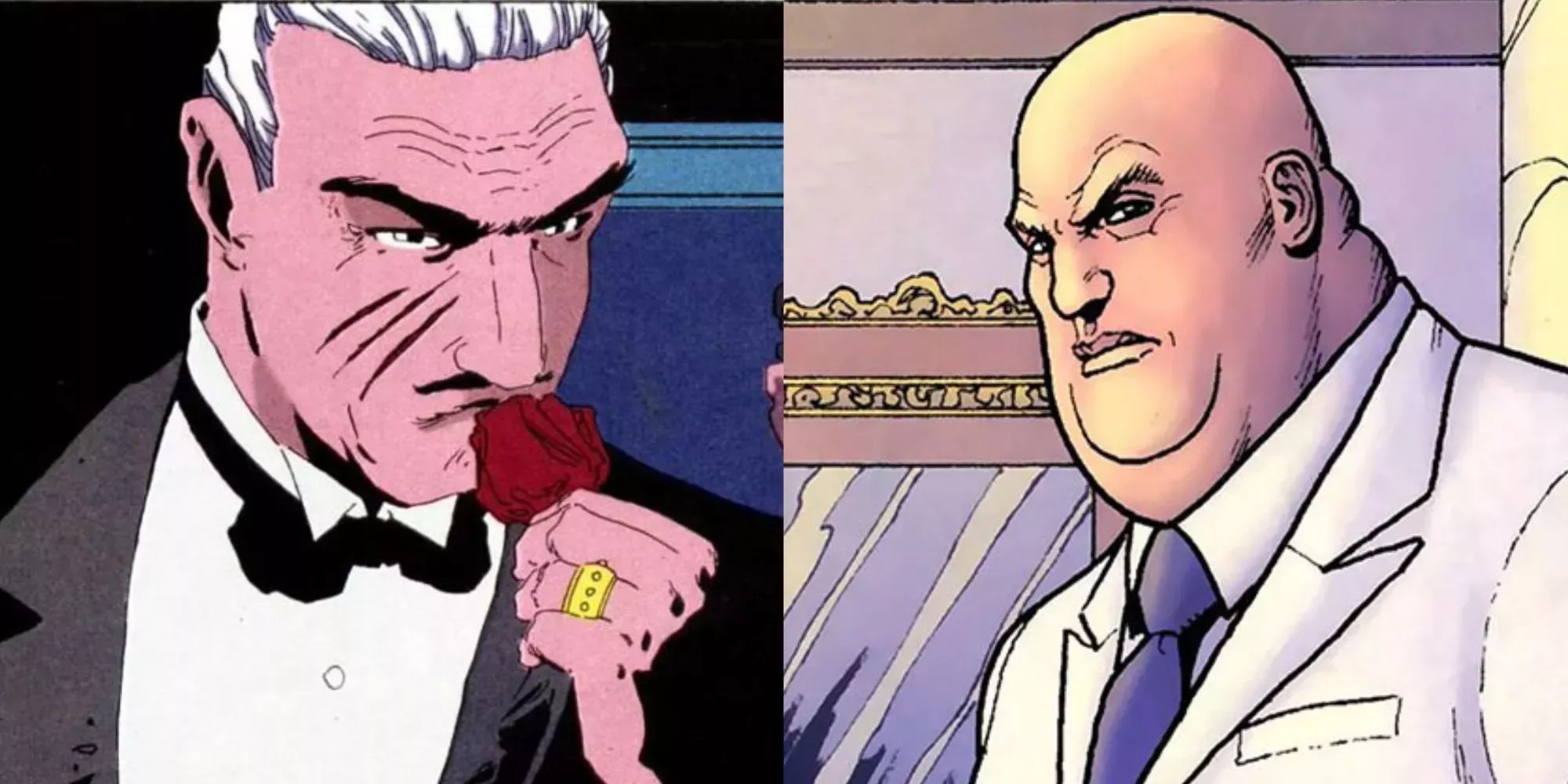 Al igual que DC, Marvel también tiene un violento señor del crimen metropolitano que controla las cosas desde la oscuridad, Wilson "The Kingpin" Fisk. Aunque Fisk es más bien un supervillano, capaz de enfrentarse directamente a los héroes, siguen teniendo mucho en común. Al igual que Falcone, Kingpin es un hombre inteligente que reclama el poder a través de la violencia. Mientras Falcone controla Gotham City, Kingpin tiene su base en Nueva York. Incluso comparten una relación de padre e hija con un antihéroe: mientras que Echo es efectivamente la hija de Fisk, Catwoman lo es de Falcone.