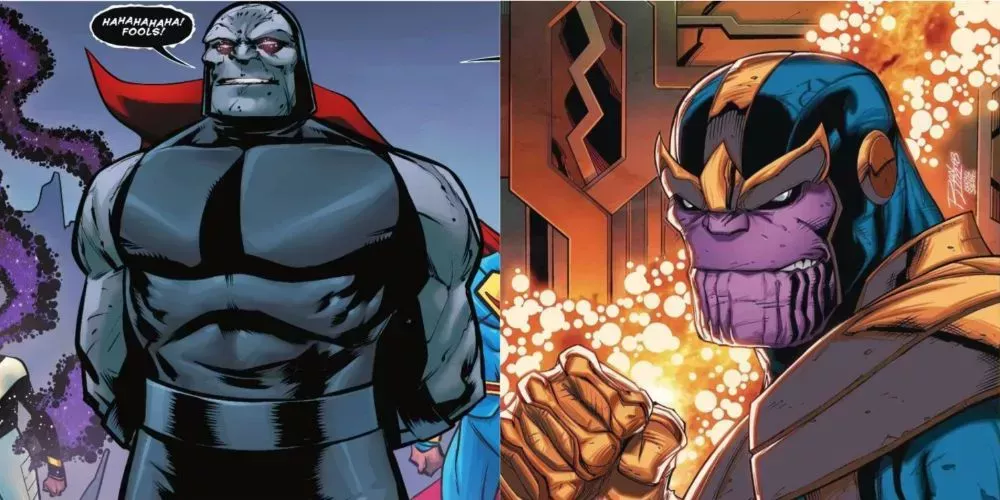 Thanos es la respuesta de Marvel a Darkseid. Al igual que Darkseid, es un cruel señor que busca una forma de controlar todo el universo, pero en su caso, quiere las Piedras del Infinito. Además, Thanos es un Eterno, mientras que Darkseid es un Nuevo Dios, ambos creados por Jack Kirby, por lo que son homólogos literales.