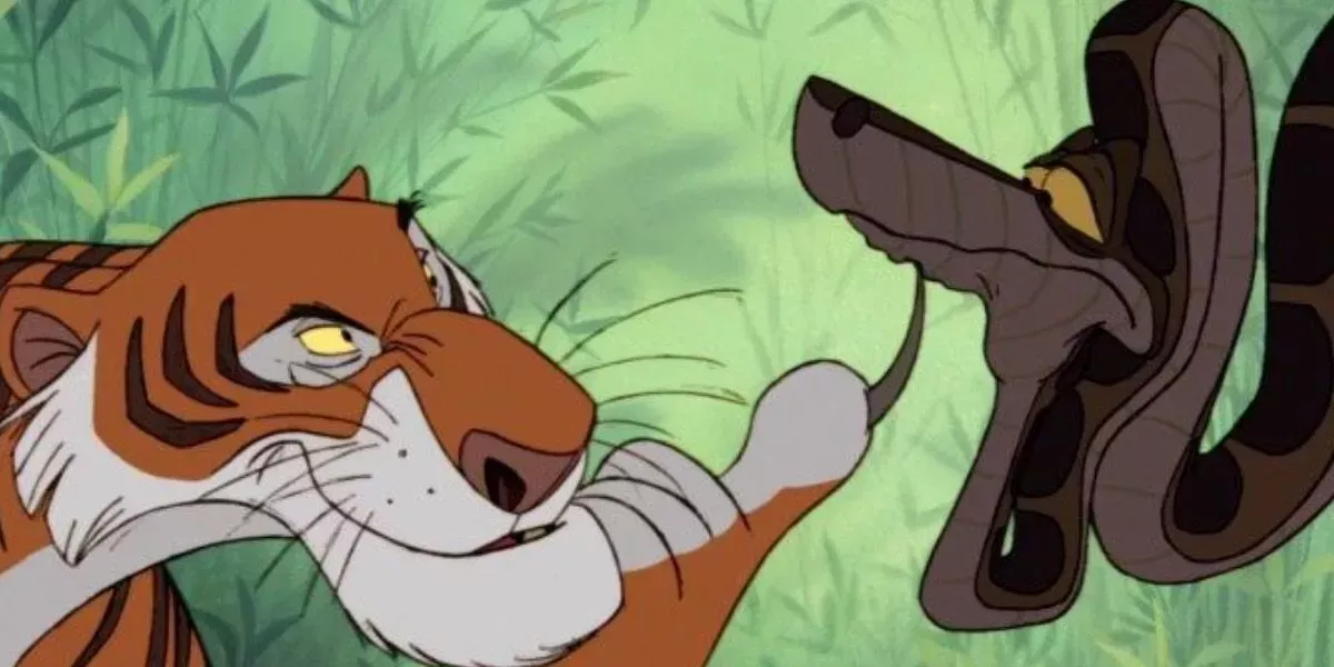 Sin embargo, Shere Khan es un villano mucho más astuto, teniendo en cuenta que intenta estrangular la información de la lamentable serpiente. Sin embargo, es evidente que Kaa planea matar y comerse a Mowgli, por lo que cualquier opresión que sufra a punta de garra de tigre se ve compensada por su propia maldad.