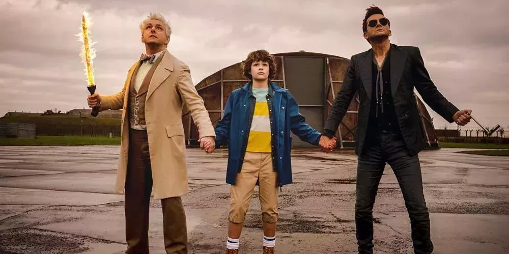 Buenos Presagios trata del inminente Armagedón, siguiendo los planes establecidos por Dios hace miles de años. Tanto el Cielo como el Infierno quieren que el Armagedón se lleve a cabo, y destinan sus recursos para ayudarlo. Sin embargo, una parte importante de su plan depende del Anticristo, Adam Young, que puede comandar a los Cuatro Jinetes y rehacer el mundo a su imagen.