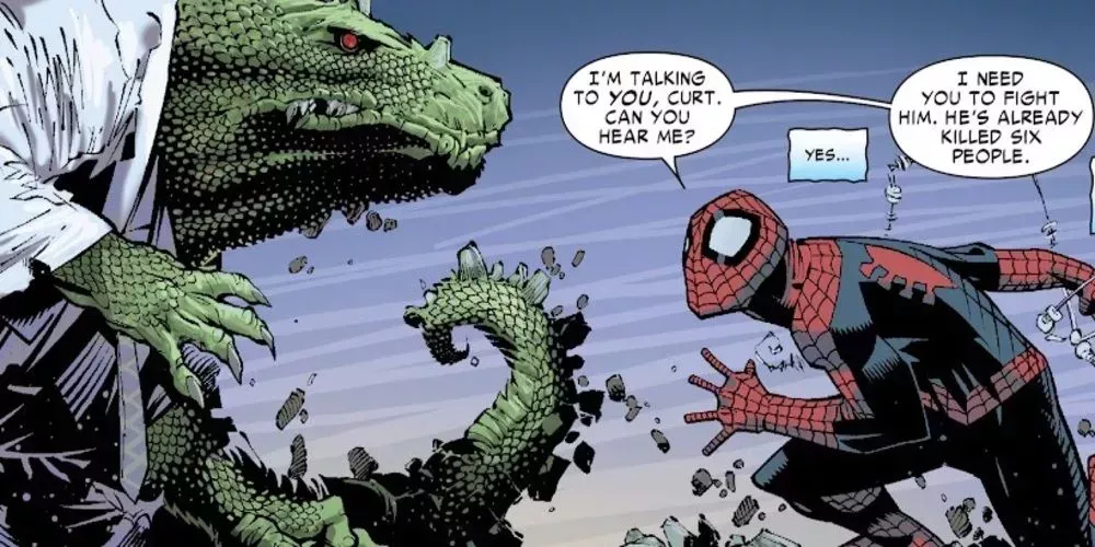 Curt Connors experimentó consigo mismo para fusionar su ADN con el de un lagarto con la esperanza de que le volviera a crecer un miembro que le faltaba y crear un gran avance científico para los humanos de todo el mundo. Aunque el intento fue un éxito, tuvo el precio de transformarle en una criatura del tamaño de un lagarto humano. El Lagarto se convirtió en un villano intermitente para Spiderman, que necesitaba un mantenimiento constante para mantener su forma humana. Las constantes idas y venidas de Curt entre su forma humana y su forma de Lagarto le han causado un sinfín de problemas, especialmente cuando su forma de Lagarto intenta constantemente convertir a todo Nueva York en gente lagarto.