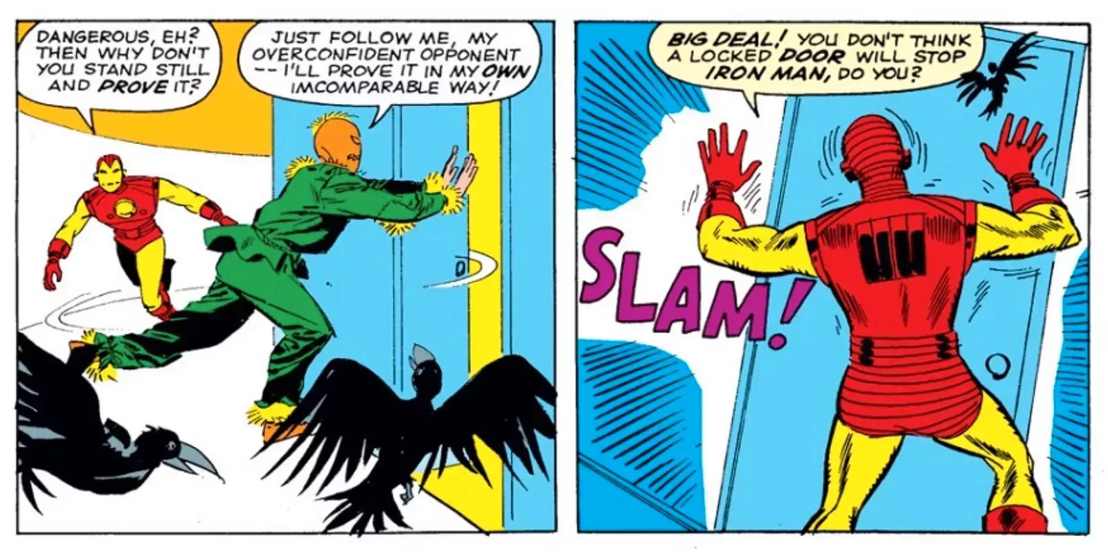 Hay algunos villanos con los que Iron Man nunca debería tener problemas. Whiplash es definitivamente uno de ellos, ya que no es más que un tipo con un fuerte látigo. Durante un número posterior de Tales of Suspense, Whiplash hace su primera aparición. Aunque habla con mucha bravuconería y confianza, lo respalda.