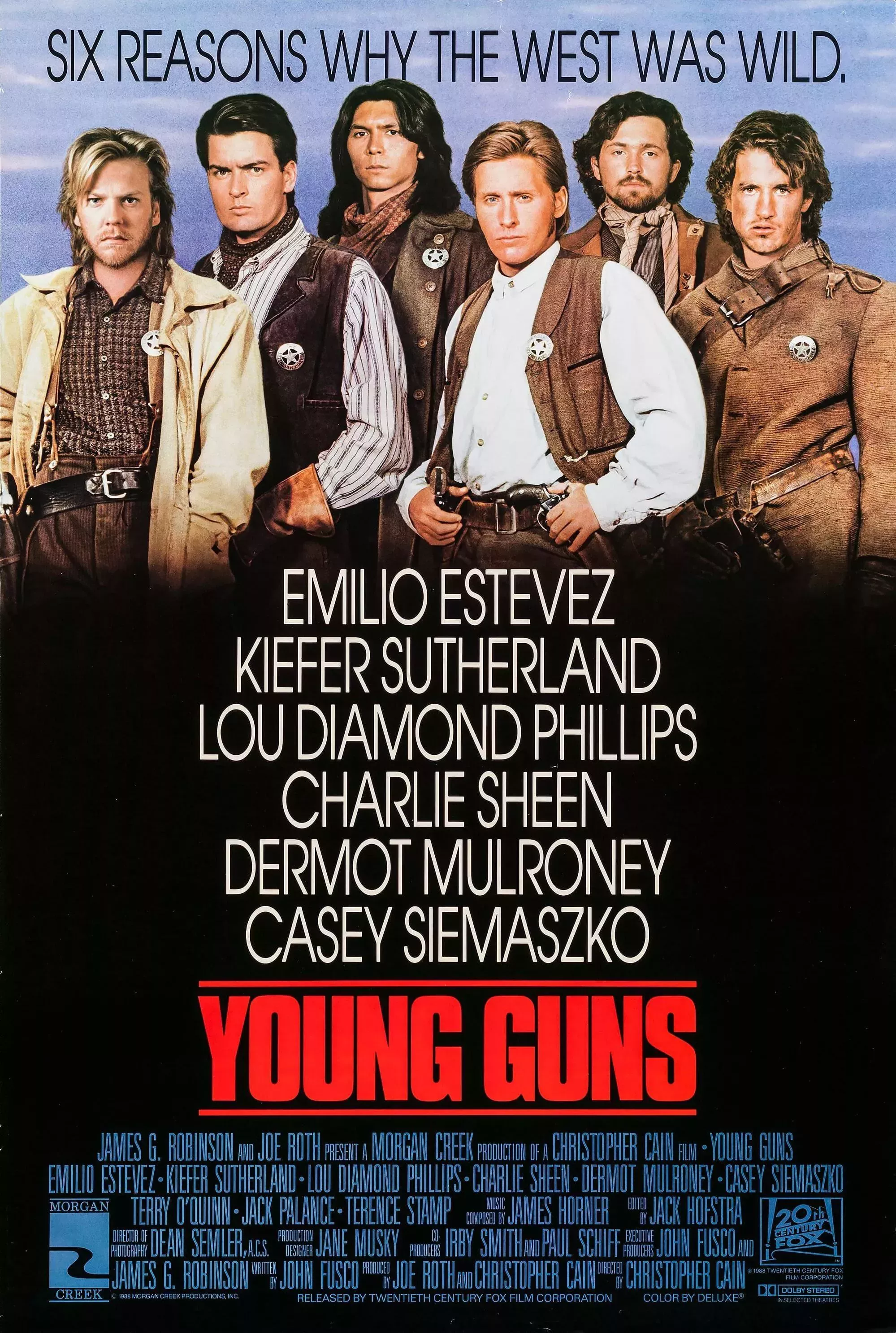 Young Guns sigue a William "Billy the Kid" Bonney cuando es contratado por John Tunstall, un ranchero firme pero justo que ha tomado bajo su tutela a varios jóvenes, los Reguladores, entre ellos Doc Scurlock y Dick Brewer. Cuando Tunstall es asesinado por un ranchero rival, Lawrence Murphy, los Reguladores reciben un mandato que les permite llevar a los asesinos ante la justicia. Esta venganza culmina en la Guerra del Condado de Lincoln, en la que los jóvenes agentes de la ley se convierten en fugitivos tras matar a un sheriff corrupto y ser perseguidos por el ejército.