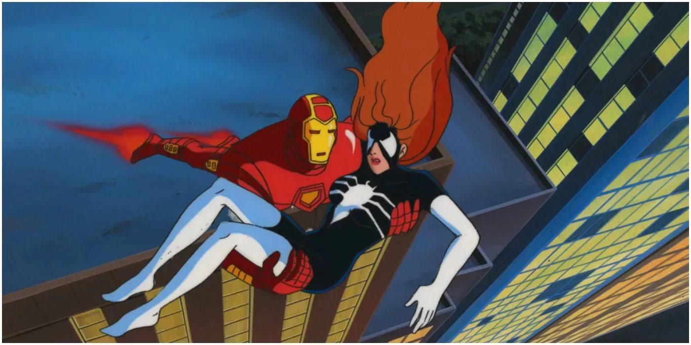 En un intento transparente de sinergia de marca, el dibujo animado de Iron Man de 1994 tenía a Tony Stark al frente de The Force Works, un equipo de superhéroes que acababa de debutar en los cómics ese año. Entre la alineación del equipo, tanto en los cómics como en la serie, estaba Julia Carpenter, la segunda Spider-Woman. Los dibujos animados convirtieron a Julia en un compuesto con Pepper Potts como el interés amoroso de la pelirroja de Tony. Interpretada por Casey DeFranco en la primera temporada, Spider-Woman fue uno de los únicos miembros de Force Works que se mantuvieron para la segunda temporada. El papel fue reasignado a Jennifer Hale, que hizo una interpretación más memorable.