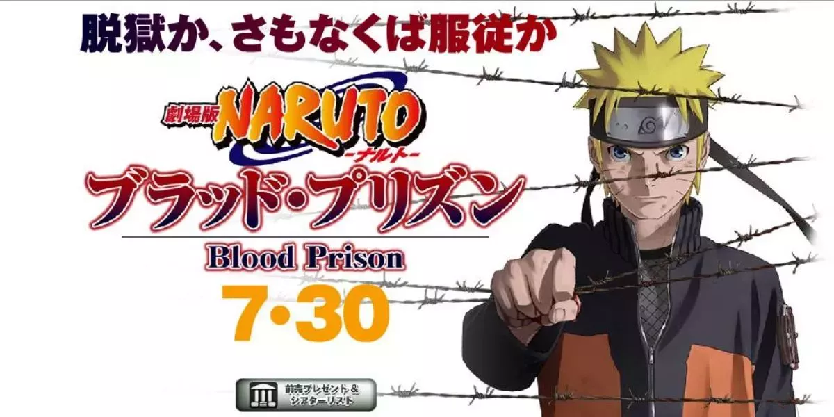 Naruto the Movie: Blood Prison muestra a Naruto en una posición comprometida, pero dispuesto a luchar. Está detrás de un alambre de espino, agarrado a él mientras mira al frente. Por el nombre de la película, el póster indica que la naturaleza rebelde de Naruto se pondrá a prueba cuando tenga que escapar de una prisión.