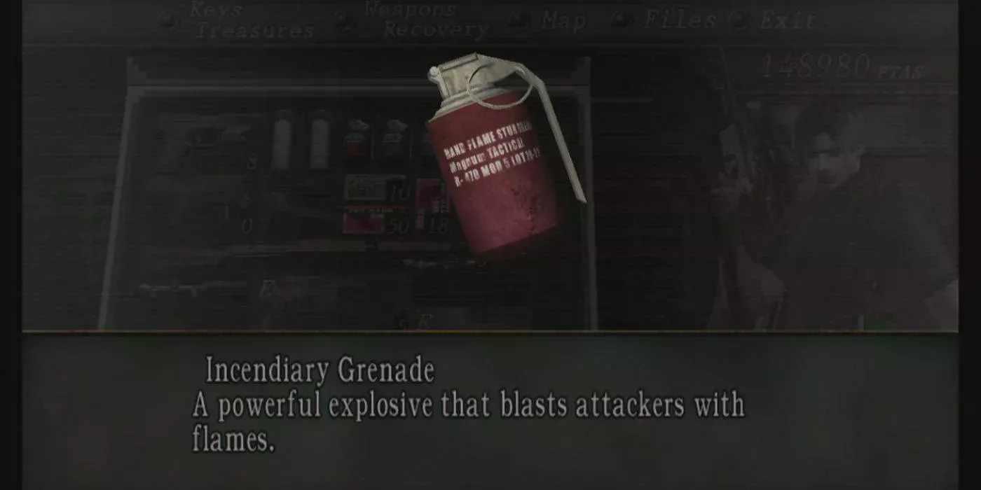 Las granadas incendiarias eran alternativas de armas limitadas, pero muy potentes, para las partes más complicadas del Resident Evil 4 original. Permitían una forma rápida y sencilla de jugar con fuego en el juego. Si se usaban bien, podían destruir a los enemigos en una fracción de segundo, sobre todo a aquellos vulnerables al fuego, como Bitores Mendez, uno de los encuentros más aterradores de Resident Evil 4.
