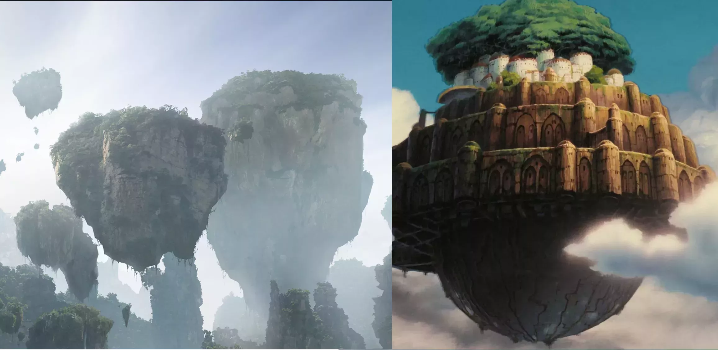 La princesa Mononoke también se centra en un antiguo bosque habitado por diversas fuerzas mágicas; al igual que Avatar, los temas de la película se centran principalmente en el ecologismo y los peligros del agotamiento de los recursos naturales. Así pues, no es de extrañar que James Cameron haya admitido que La prin cesa Mononoke y las islas flotantes del Castillo en el Cielo influyeron significativamente en el planeta selvático de Avatar, Pandora, y en los temas generales de la película.