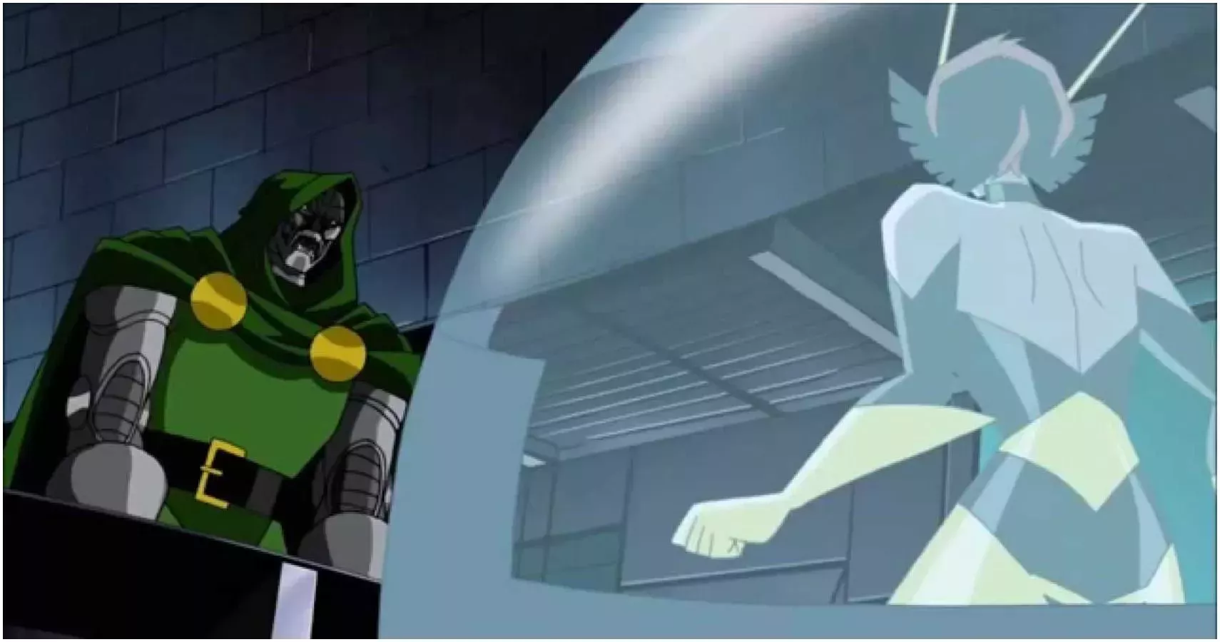 El Doom de los Vengadores: EMH puede ser la mejor encarnación del personaje fuera de los cómics. En su episodio de debut, "La guerra privada del Doctor Doom", hace que sus Doombots secuestren a la Mujer Invisible y, de paso, a la Avispa. Mientras Doom hace su trabajo, la Avispa cautiva se burla de él, pero se encuentra continuamente con el silencio, y así sólo se intensifica. Finalmente, Doom habla, sólo para hacerle saber que ella y sus insultos no significan nada para él, si acaso. Incluso la incesantemente parlanchina Avispa se calla brevemente ante la respuesta de Doom.