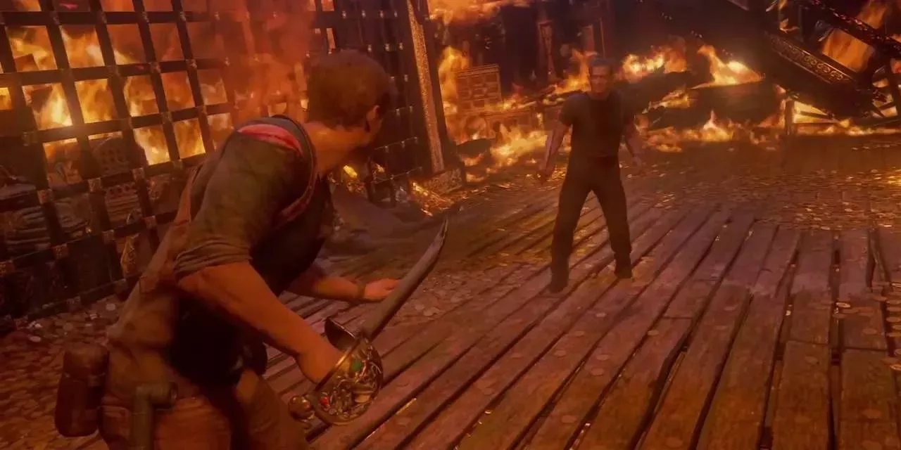 Uncharted 4: A Thief's End también amplía las plataformas y el juego de armas de las entregas anteriores con mundos más grandes y abiertos y nuevas mecánicas de juego, como el gancho. Además, la lucha con espadas entre Nate y el gran villano del juego contribuye a la sensación de espadachín del juego.