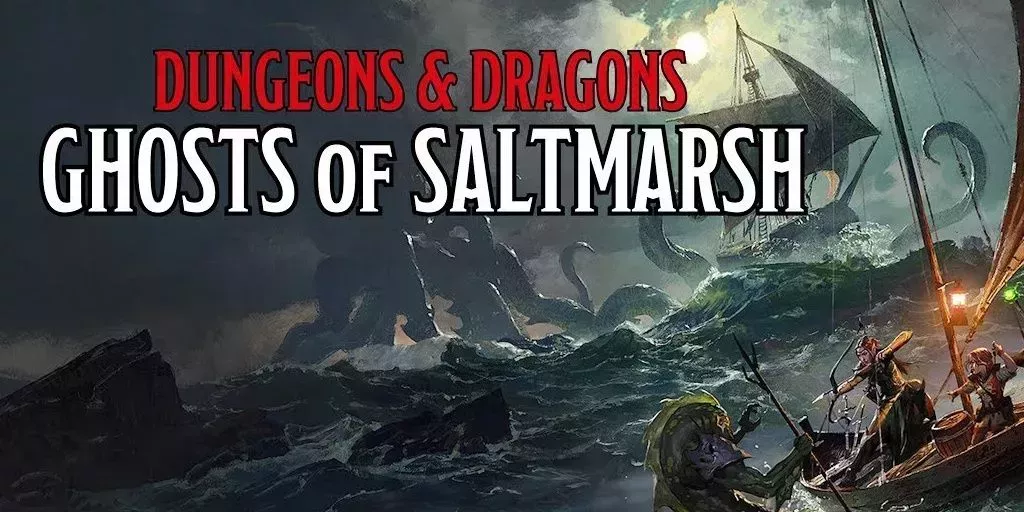 Ghosts of Saltmarsh presenta varias aventuras clásicas y queridas de la historia de D&D, actualizadas para 5e. Aunque comienza de forma sencilla, las aventuras se vuelven poco a poco más complejas e introducen gradualmente a los jugadores y al DM en el combate, el sigilo, la interacción social, las propias reglas de navegación del libro y mucho más.