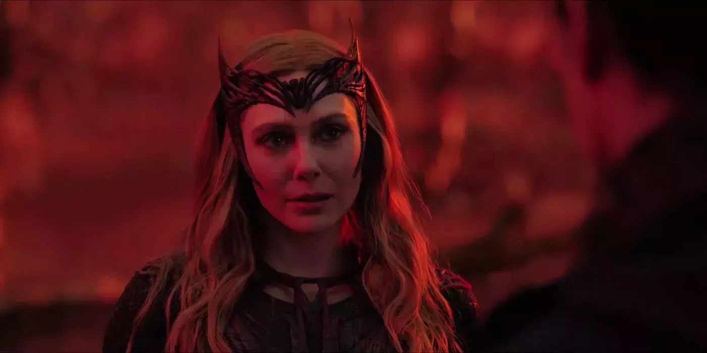 Todavía conmocionada por los sucesos de WandaVision, una Bruja Escarlata oscura utilizó el nuevo control de sus habilidades, así como el tomo mágico conocido como el Darkhold, para empezar a explorar el multiverso. Su búsqueda de sus hijos perdidos se trasladó al Doctor Extraño en el Multiverso de la Locura, donde empezó a cuestionar la equidad del MCU.