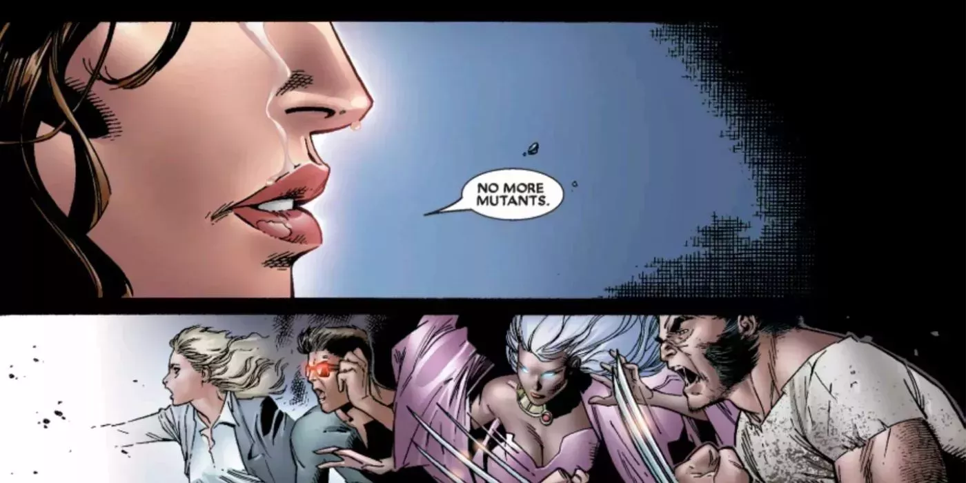 Con una simple frase, las poderosas habilidades de Bruja Escarlata borraron a la mayoría de los mutantes del planeta y casi acabaron con la raza por completo. Bruja Escarlata acabaría ayudando a restablecer la raza mutante y a enmendar su situación, pero sigue siendo uno de sus momentos más trágicos y bárbaros en los cómics.