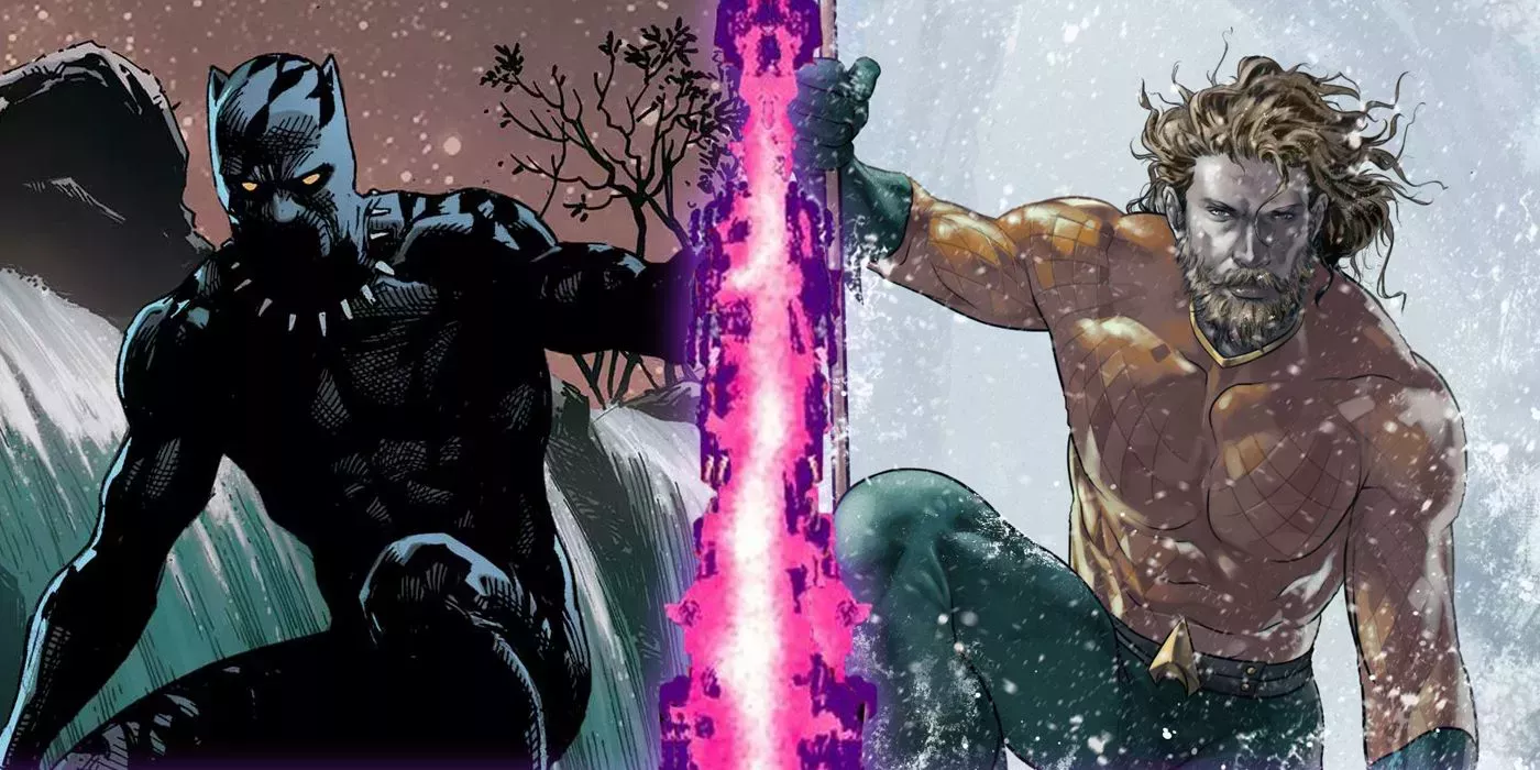 T'Challa es el rey de Wakanda que se unió a los Vengadores como Pantera Negra. Creó trajes y armamento avanzados utilizando el poderoso vibranium y su fuerza se ve potenciada por una hierba mística con forma de corazón. Arthur Curry es el Rey de Atlantis y el portador del Tridente de Poseidón que se unió a la Liga de la Justicia como Aquaman.