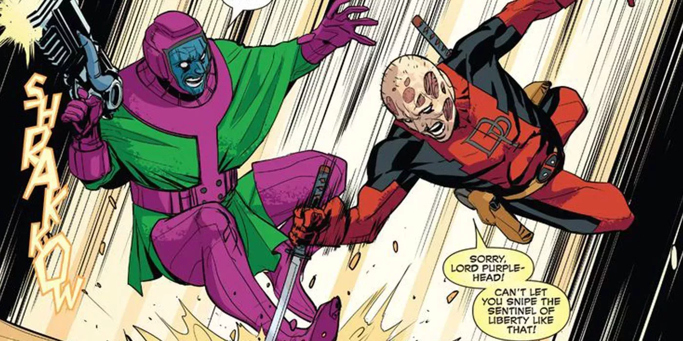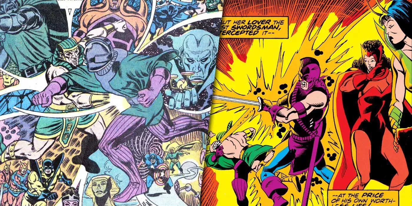 Kang capturó a los tres héroes y a varios Vengadores, pero no se molestó en eliminar al Espadachín, descartando al mentor de Ojo de Halcón como una amenaza potencial. Sin embargo, subestimó al "simple mortal", que buscó poderosos aliados para su intento de rescate. En el conflicto final, Espadachín sacrificó su vida por la de Mantis, desterrando a Kang a la corriente temporal.