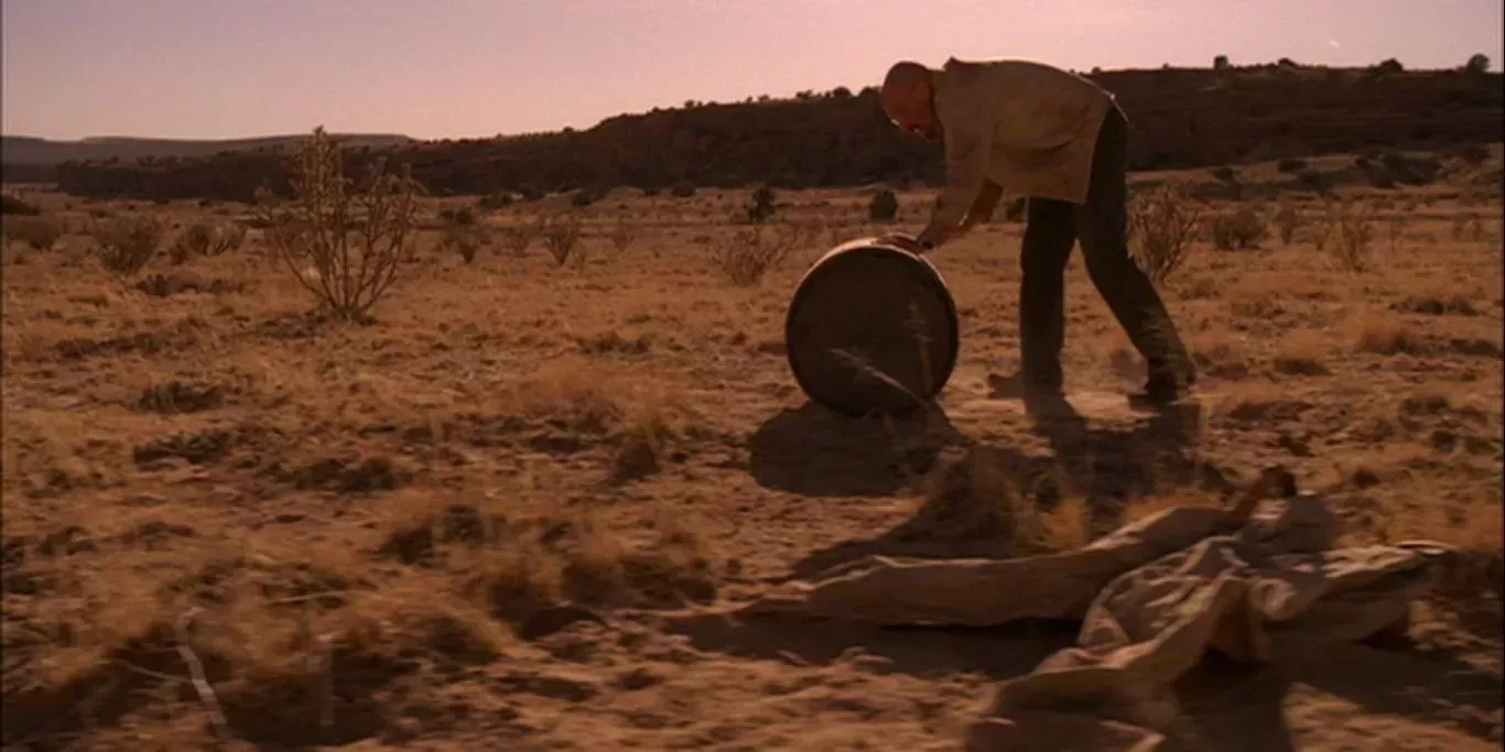 El cÃrculo se cierra en la última temporada de Breaking Bad. Estos mismos pantalones aparecen en el episodio clave, "Ozymandias", en el que Walt vuelve a llevarlos en el desierto después de que otro crimen salga mal. Esta vez, quedan atrapados en un cactus mientras hace rodar un barril de dinero por el paisaje.